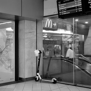 Looking at the recent introduction of electric scooters to the Brisbane streets, I was taken with how people were adopting them and using them in their everyday lives. While walking the streets I heard the negative comments from other pedestrians on how fast they were or where they had been parked or abandoned. This series of photographs seeks to illustrate these interactions along with questioning whether the scooters represent a viable functional addition to the city or have the potential to become visual pollution (despite their low eco footprint). Owen Flynn 2018